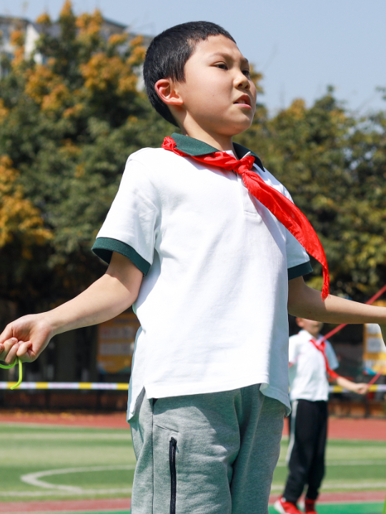 参赛的同学们有序到场,裁判哨声响起,他们在场上跳跃着,挥动着双臂,手中的跳绳在空中舞出一条优美的弧线,只见绳子在他们的脚底下“嗖嗖”地穿过,一根短短的细绳,演绎的是激情和拼搏。他们动作连贯、身体轻盈,拼尽全力,小小的身体,蕴含大大的能量,奋力争取属于班级的荣誉。