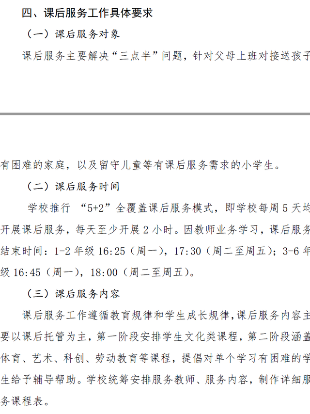 华阳实小积极落实教育部和教育厅要求,课后服务实施“5+2”模式,主要解决“三点半”问题,针对父母上班对接送孩子有困难的家庭,以及留守儿童等有课后服务需求的小学生。
