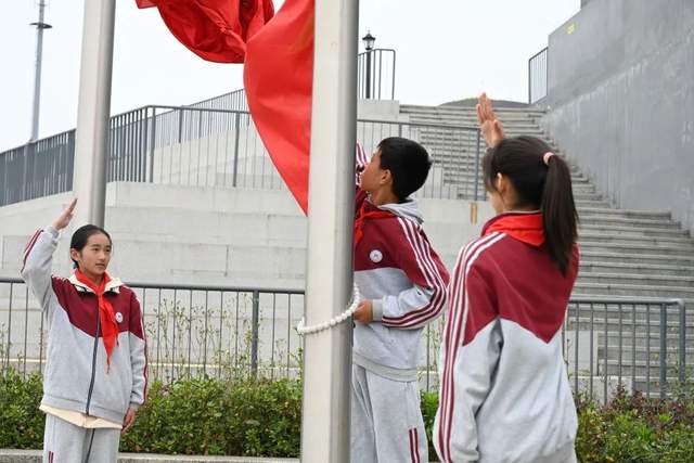 在漫长的革命斗争中,多少中华儿女,抛头颅洒热血,舍身为国,舍己为民,将积贫积弱的中国铸就成富强、民主、文明、和谐的新中国。在革命烈士用鲜血染成的国旗下,全体师生举行了严肃、庄重的升旗仪式。