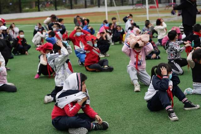 2022年3月31日下午14点30分,由魏校长宣布成都高新区朝阳小学2022年春季学期地震应急疏散演练正式开始!