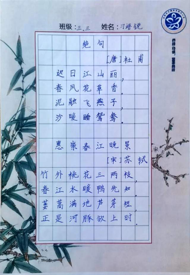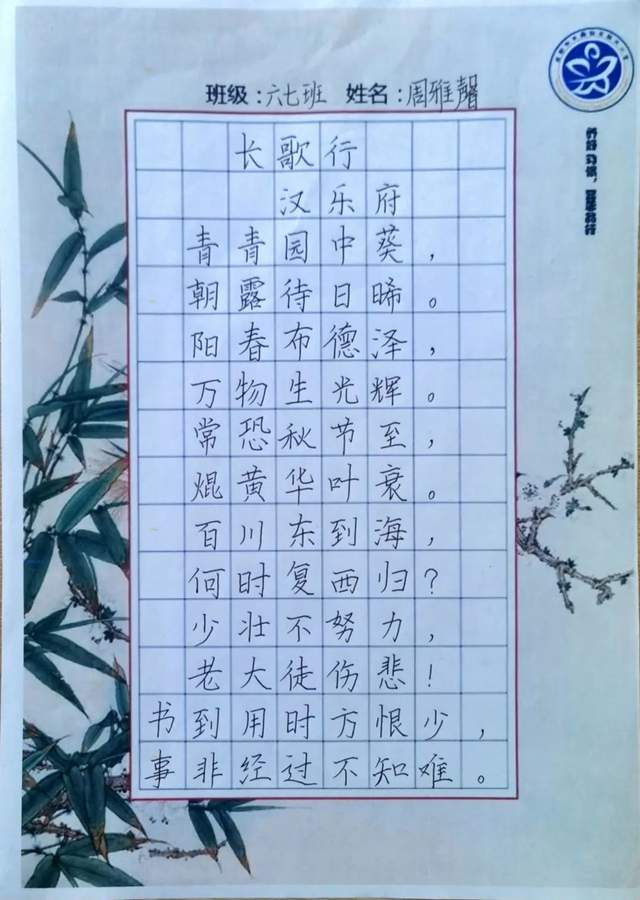 拥抱春天,书写经典,本次书法比赛活动丰富了“文化自信”的内涵,激发了学生对书法的兴趣,提高了全体师生的审美意识。新小将鼓励全体师生持之以恒练习书法,养成书写好习惯,共同传承祖国优秀传统文化。