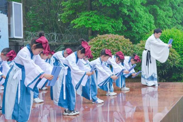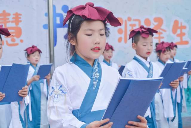 各年级方队的孩子们纷纷诵读起经典诗文,那铿锵的音韵在大家耳边久久回响,又如春日的百花,将馥郁的芳香溢满校园。