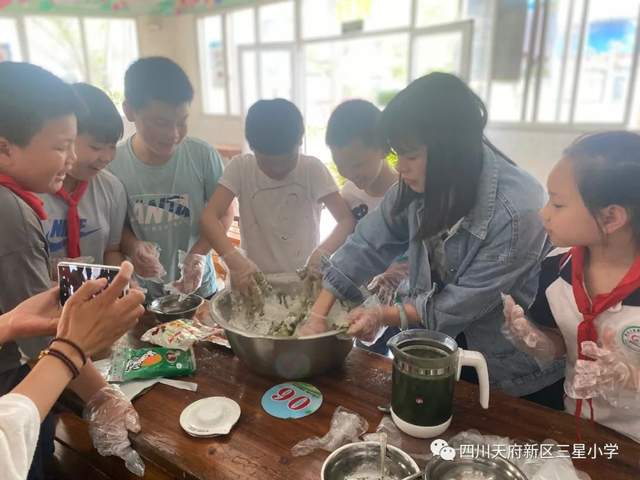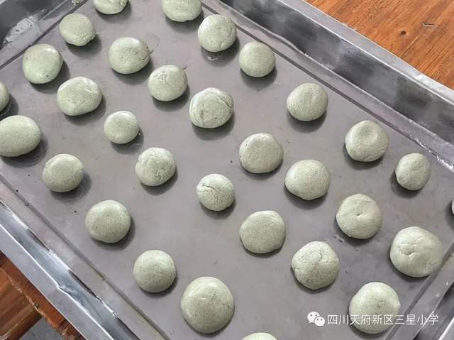 青团,又叫清明团子,是清明节的特色美食。为了让孩子们了解清明节的由来和风俗,四川天府新区三星小学三、四年级的孩子们在劳动课题组老师们的带领下进行了一场别有生趣的青团制作活动。