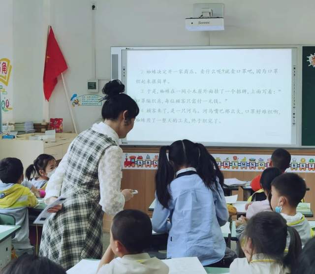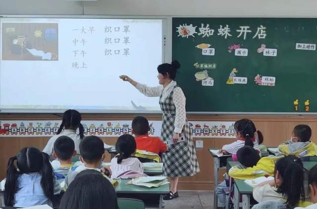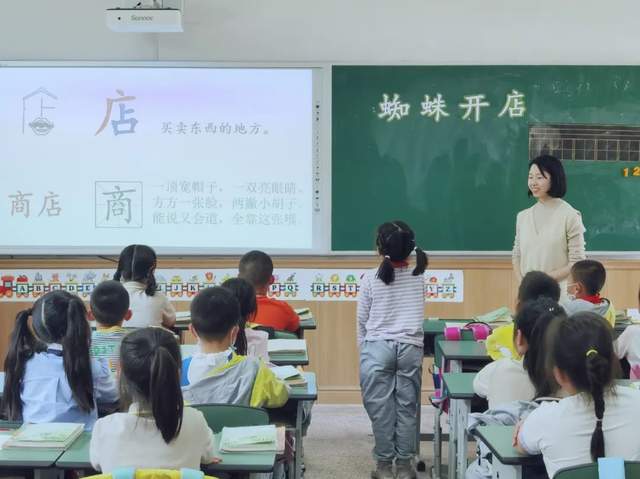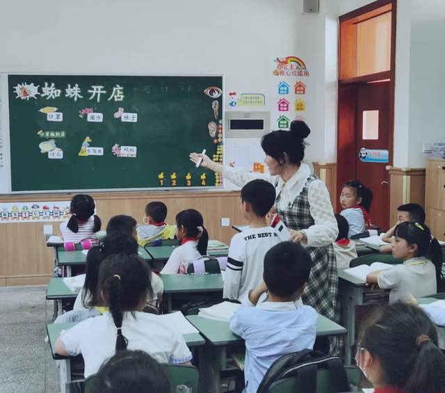 课中,周老师巧妙帮助孩子们边读边梳理出故事的内容特点:卖什么、挂招牌、来了谁、结果怎样。随后,让孩子们试着讲课文第一部分的故事,并且总结讲故事的方法:按照顺序、加上动作、带上表情。最后,放手让学生创编创演,小组讨论蜘蛛还会卖什么等,孩子们想象力丰富,回答十分精彩。周老师的这节课,清晰有层次,生动有趣味。