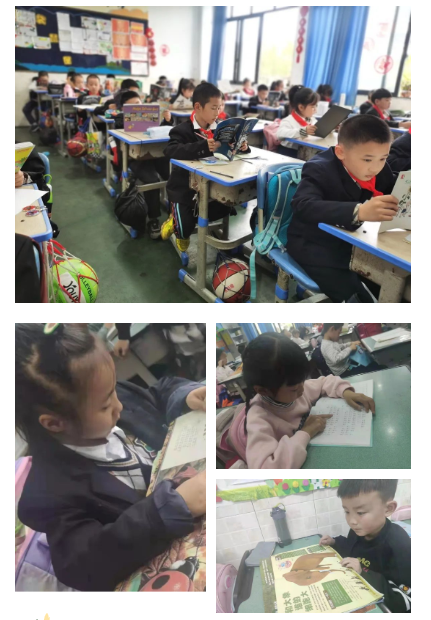 阅读的氛围,离不开老师的用心布置和精心挑选的书目。从一年级第一次给孩子们讲亲子阅读系列:绘本《我的妈妈》、《逃家小兔》……到如今,读《七色花》《小狗与小房子》……孩子们在一本本的故事里,一行行的文字里,学会了成长,学会了乐观、善良、友好以及梦想。班级的图书,从绘本到几百字、几千字的整本书,孩子们根据自我爱好和需要尽情挑选,享受每一天中午的阅读时光。中午最美的时光就是孩子你,捧起一本书,如痴如醉地读着,嘴角带微笑的样子,静静地,很美很美。
