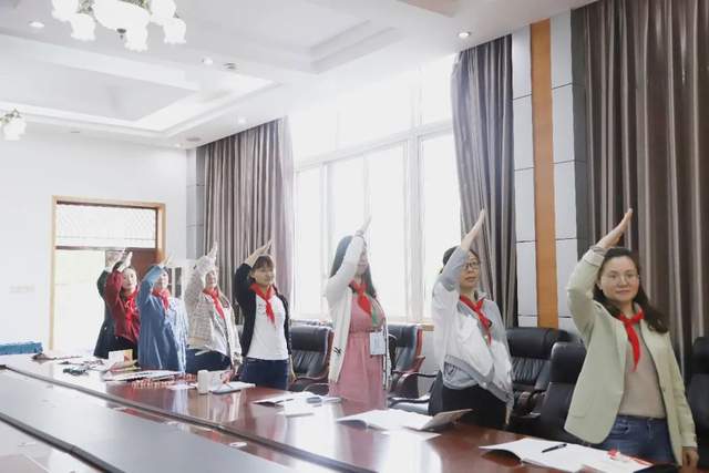 南湖小学大队辅导员钟杨老师 结合《中国少年先锋队章程》和共青团中央、全国少工委有关规定,对队前教育内容进行了详细培训。重点强调入队必备“六知”“六会”“一做”等方面的基本操作规范;带领参会辅导员老师们现场规范佩戴红领巾、敬队礼、呼号等少先队礼仪;同时对接下来将要开展的分批入队工作做了详细部署。