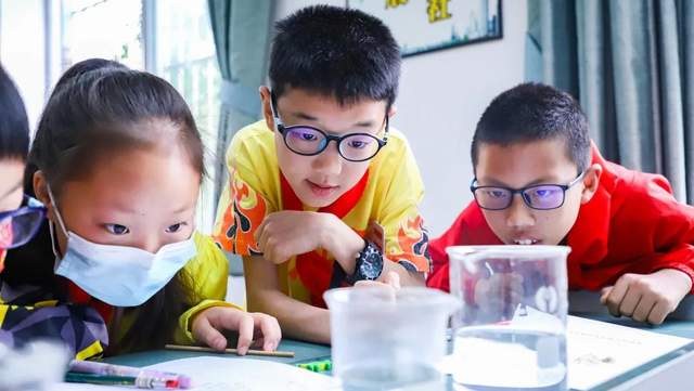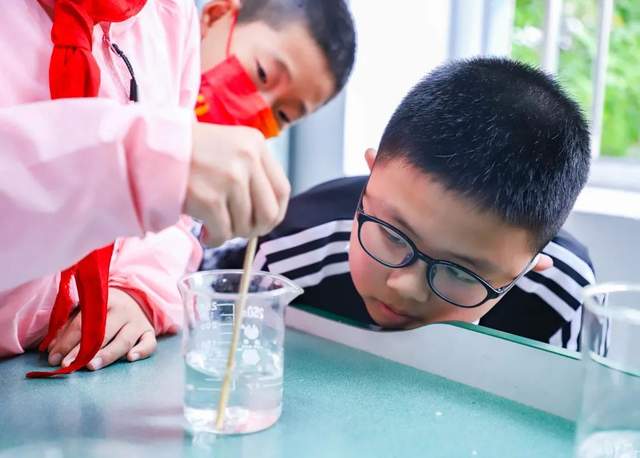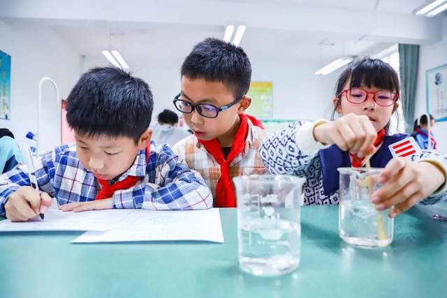 四年级同学的竞赛题目为“怎样加快溶解?”同学们在实验前大胆猜测实验结果,实验中按照流程谨慎操作,实验后认真观察结果并端正、流利地书写实验报告,充分展示出扎实的实验操作技能。