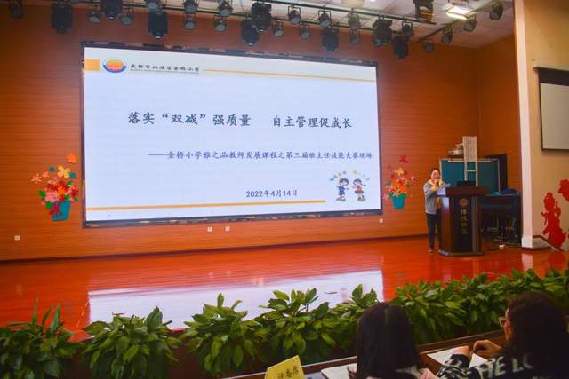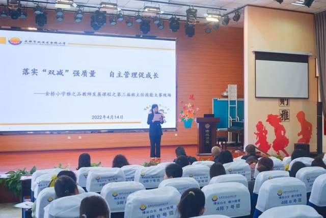 在这最美的人间四月天,为进一步落实“双减”政策,提升“双减”背景下班主任班级管理的水平,进一步促进学校班主任专业素养及综合素质的整体提升,激发班主任专业提高的内驱力,搭建班主任互相学习交流和展示的平台,4月14日下午,由金桥小学德育安全处组织的第三届班主任技能大赛在溢雅厅如期举行。
