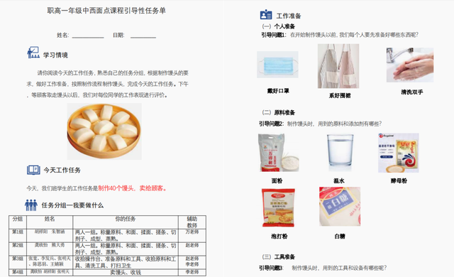在体例上,活页式教材主要分为两部分,活页式教材的导言部分和学习任务活页部分。赵瑞老师结合他目前的实践尝试,分享了他在中西面点课程教学中设计的引导性任务单,就是借鉴参考了活页式教材中学习任务部分的结构设计。