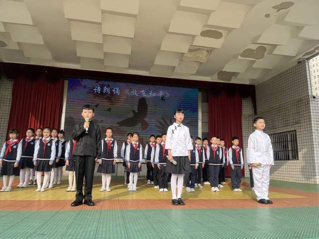 接着,4.6中队带来了诗歌朗诵《放飞和平》,清晰的语言,响亮的声音,动人的誓言,让人更加懂得和平的珍贵。