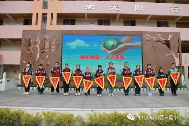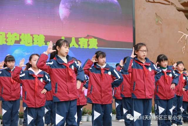 接着,全体少先队员为大家展示手语舞《地球小卫士》,倡导更多的同学能成为“地球小卫士”,保护我们的地球。