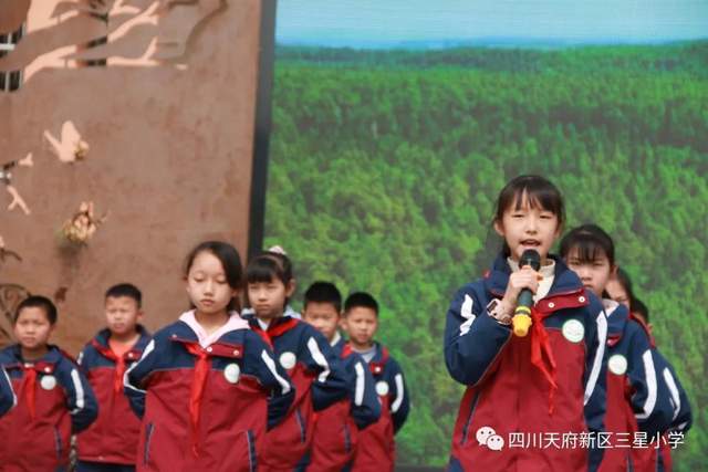 首先,四(3)中队的少先队员们给大家带来了诗朗诵《保护我们的地球》。四个孩子带领全校师生领略了祖国的美好风光,深情地朗诵,如诗的画卷让我们深刻地认识到祖国的壮丽山河需要我们用心呵护。