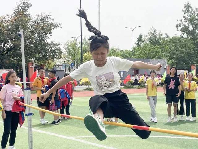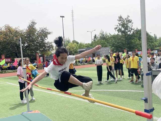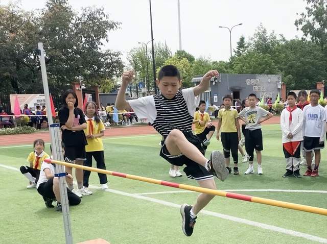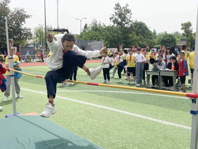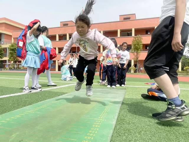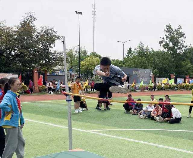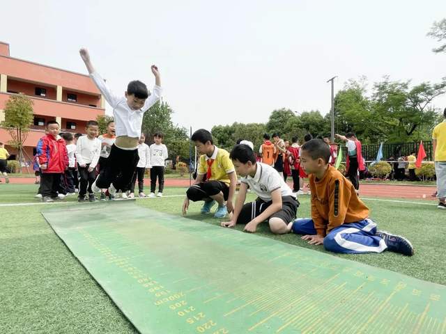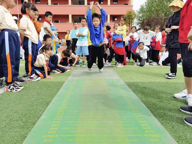 现在我们来到跳远和跳高比赛赛场:奔跑助力,一跃成名。尺子丈量的每一寸地方,指引了未来努力的方向;沙地上的每一个足迹,都承载了汗水挥洒的记忆!
