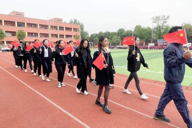 英姿飒爽的彩旗方队、公正严明的裁判方队以及独具特色的班级方队都伴着激越铿锵的乐曲,迈着整齐有力的步履,精神抖擞地依次从主席台前经过,接受台上评委、老师们的检阅。