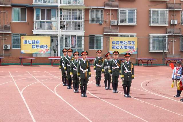 升旗仪式:伴随着国歌,追随着五星红旗的光,在鲜艳的国旗下,挥洒汗水!