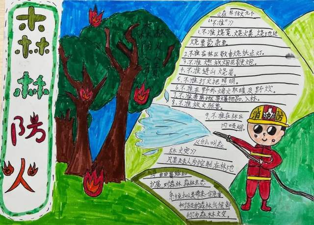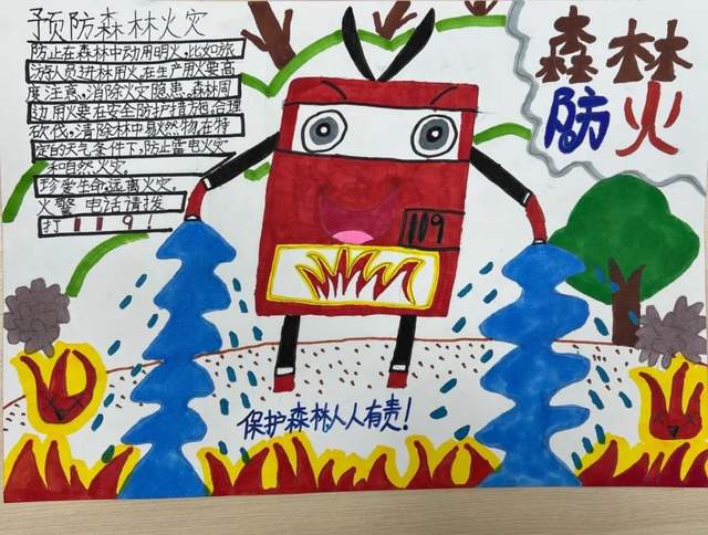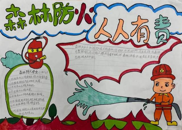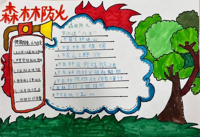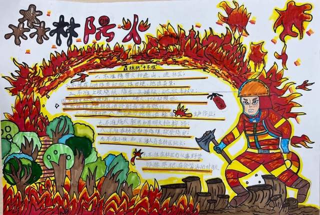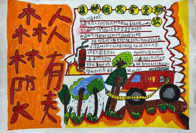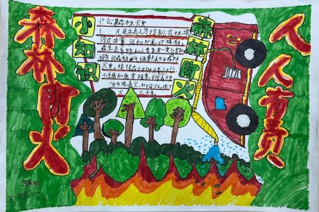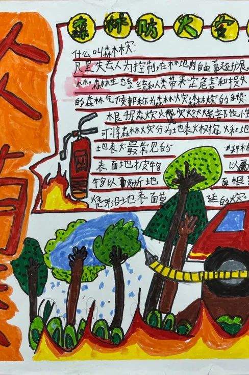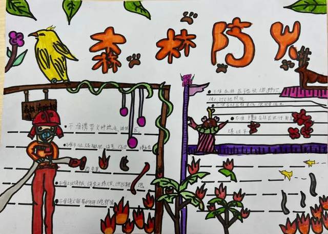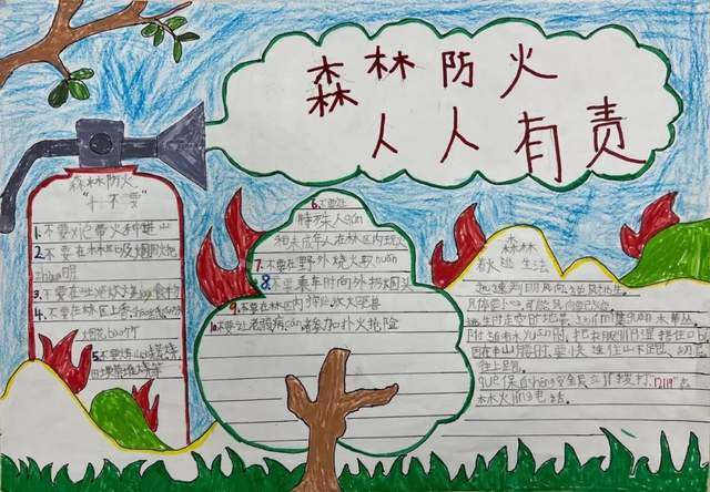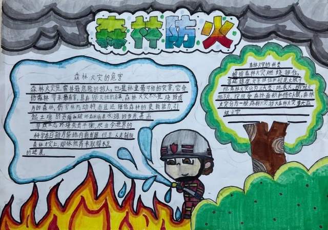 “火”是我们生活中不可缺少的,它能给我们带来温暖,希望和幸福,但也存在着危险,它是森林的天敌,每年冬春之际,都是森林火灾的多发季节,森林资源受到破坏,经济损失严重。为提高学生的森林防火意识,努力营造良好的社会氛围,尽情展示我校学生的风采,大力培养学生动手、动脑能力,激发学生创新能力,特举行“森林防火、人人有责”小报比赛活动。