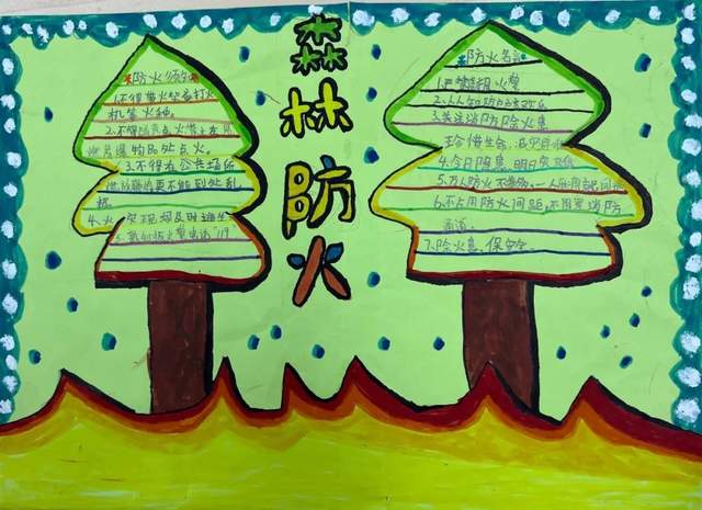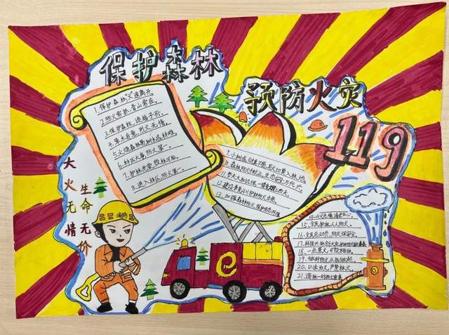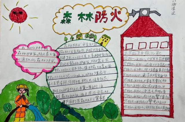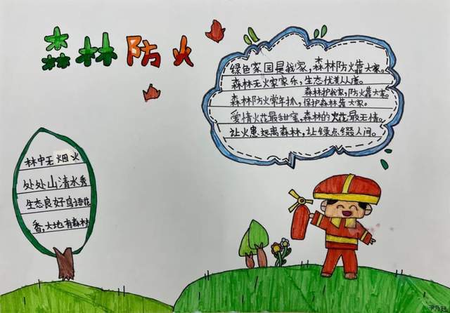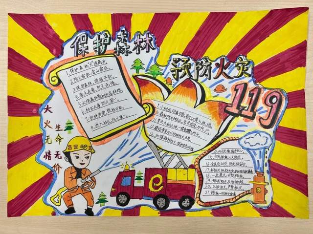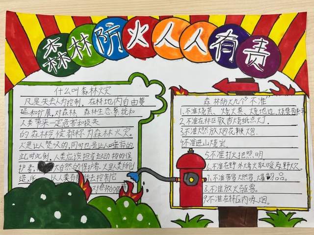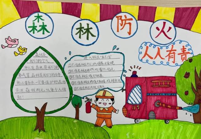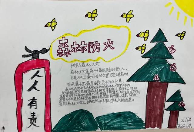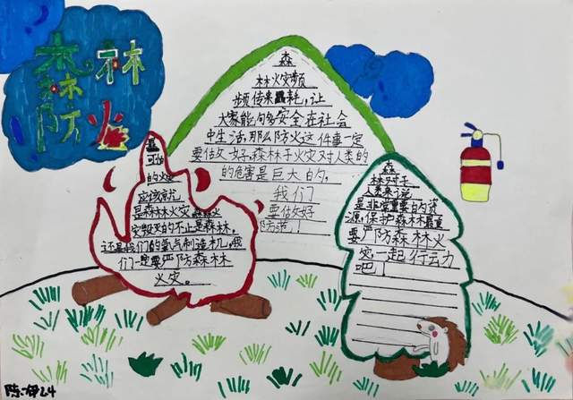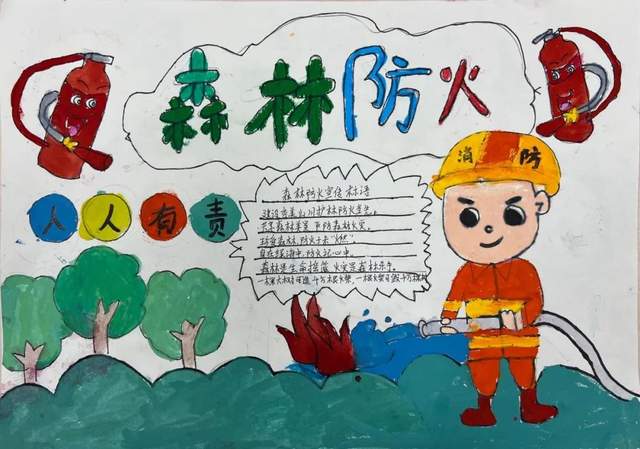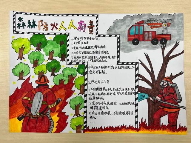 “火”是我们生活中不可缺少的,它能给我们带来温暖,希望和幸福,但也存在着危险,它是森林的天敌,每年冬春之际,都是森林火灾的多发季节,森林资源受到破坏,经济损失严重。为提高学生的森林防火意识,努力营造良好的社会氛围,尽情展示我校学生的风采,大力培养学生动手、动脑能力,激发学生创新能力,特举行“森林防火、人人有责”小报比赛活动。