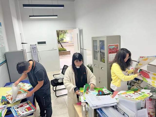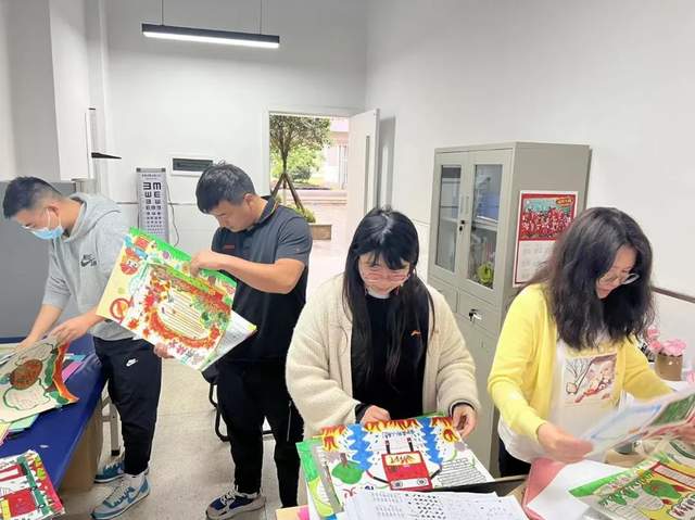 安全办宁老师与评委老师们认真的评选本次活动的获奖作品!
