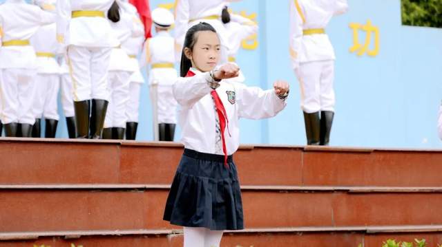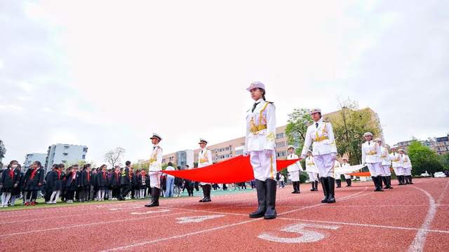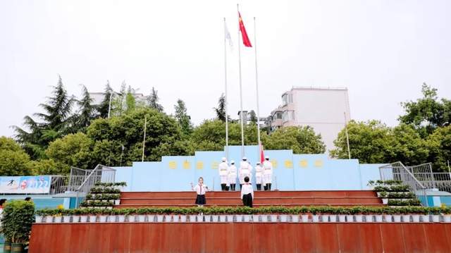 英姿飒爽的国旗护卫队迈着整齐坚定的步伐,精神抖擞地走向升旗台。伴随着雄壮的国歌声,鲜艳的五星红旗冉冉升起,激荡起雷霆万钧的力量。棠湖小学全体师生仰望这一抹中国红,一种对国家的热爱和仰望之情油然而生,一种为实现中华民族伟大复兴中国梦的奋斗之情油然而生!