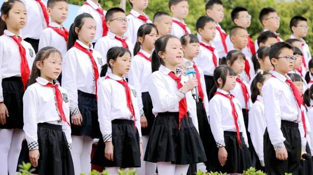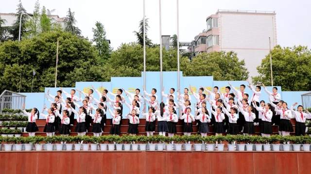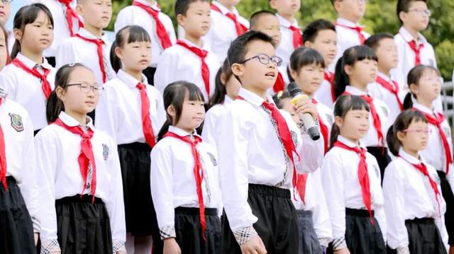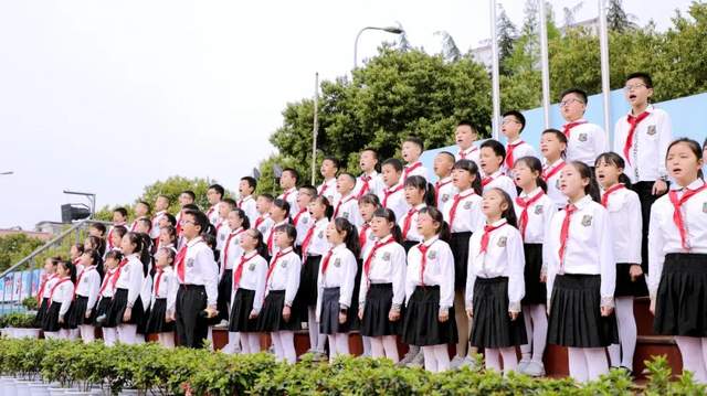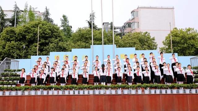 四九中队的队员们一起高歌《没有共产党就没有新中国》,共同向党致敬。嘹亮的歌声在校园上空回荡,慷慨激昂,催人奋进。激励每一位海棠娃争做一颗颗传播中华优秀文化的先锋,争当新时代的好队员!