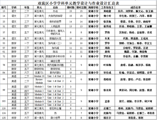 为深化“基于课程标准的教学评一致性”的课堂教学变革,通过精准教学、精准作业落实“双减”,促进双流教育高质量发展,双流区采取“揭榜挂帅”的方式遴选组建中小学学科单元教学设计与作业设计研修工作坊300个,其中,小学工作坊共计128个。成都市双流区棠湖小学一向重视课程建设,通知下发后,老师们纷纷积极主动报名。学校通过“自主申报—遴选—择优上报”等环节,成功向双流区申报共计18个学科单元教学设计与作业设计研修工作坊,占双流区小学学科单元教学设计与作业设计研修工作坊14%。积极研制涵盖全学段、全学科“单元教学设计与作业设计”,为建设双流区“精品作业资源库”献力,推出高质量作业,供区域教师精准教学、家长学生个性化学习选择使用。