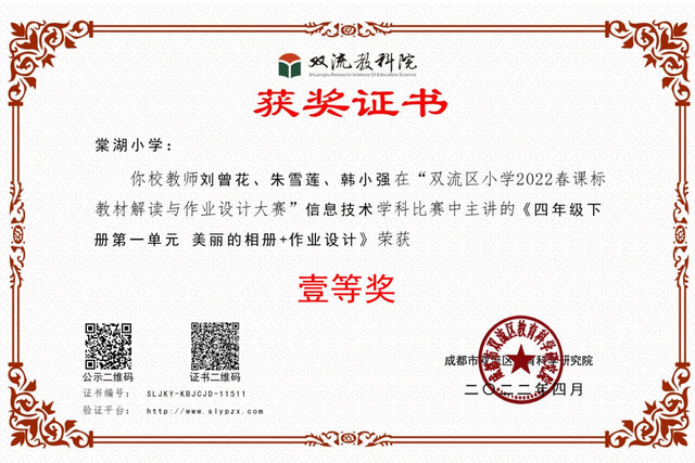 “千淘万漉虽辛苦,吹尽狂沙始到金。”棠湖小学在本期被遴选为成都市义务教育作业资源建设实验学校,是双流区唯一入选的小学。
