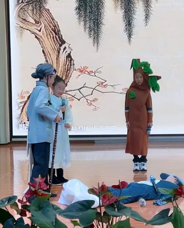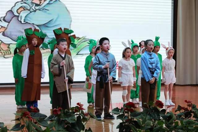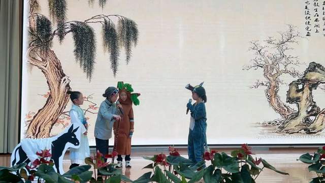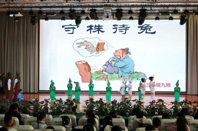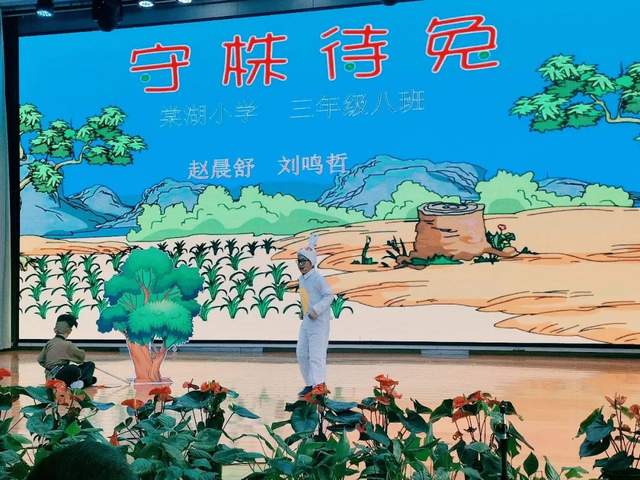 同样是《守株待兔》,3.9班的同学却带来了不同的表演形式,舞蹈、表演、歌曲,交织在一起,将故事变得更加趣味盎然。