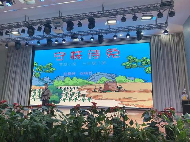 一人一树一兔,就构建出经典的寓言故事《守株待兔》,农夫的不思进取,兔子的莽撞,在3.8班同学们的演绎下变得更加生动。也更让同学们明白守株待兔不可靠,收获全凭勤耕耘。
