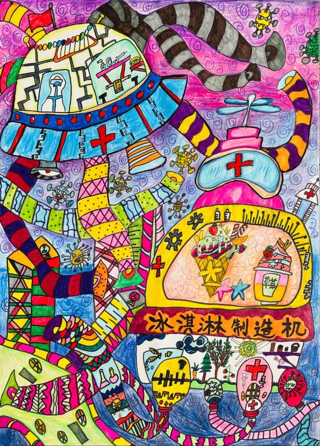 王思雨的作品《我们的未来世界》获得少年儿童科学幻想绘画比赛三等奖。