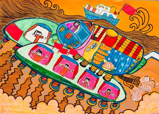 唐馨悦的作品《中国海舰队》获得少年儿童科学幻想绘画比赛二等奖。