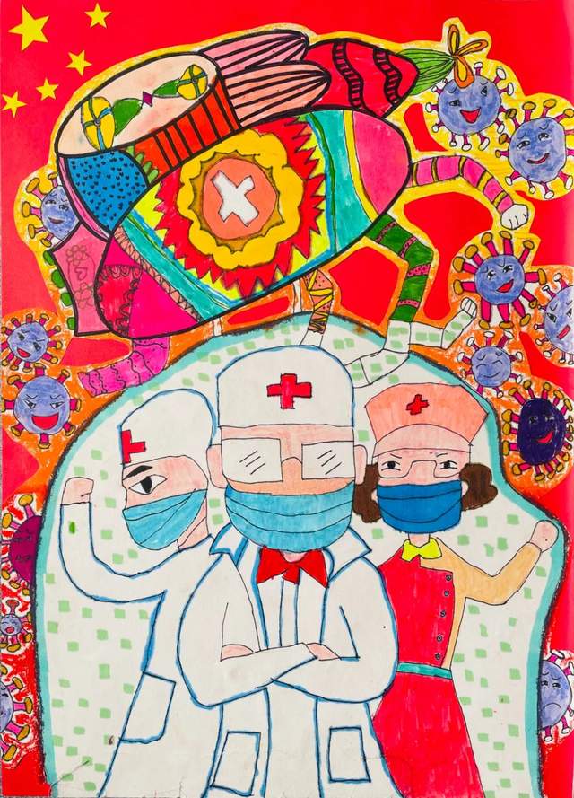 尹美涵的作品《中国力量》获得少年儿童科学幻想绘画比赛三等奖。