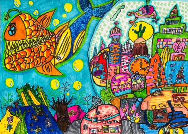 刘晨羲的作品《海底科技城》获得少年儿童科学幻想绘画比赛三等奖。