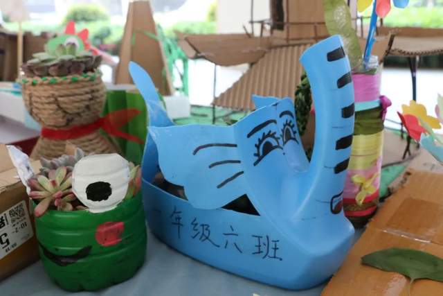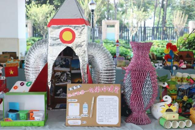 为了培养孩子们的动手能力、创造力及想象力,提高环保意识,实现资源的可持续利用,双流区实验小学外国语学校组织孩子们开展了“变废为宝”科技作品制作及展示活动。孩子们利用课余时间,以生活中废弃的易拉罐、矿泉水瓶、可乐瓶或学习上的废弃文具及用过的玩具,甚至是碟片、废螺丝、废铁丝、塑料管等“废物”为原材料,用灵巧的双手创作出了许多创意独特、形状新颖、美观实用的作品,让每一件作品都展现自己独特的创造力和想像力,将生活中的垃圾转化为可利用资源,实现变废为宝。