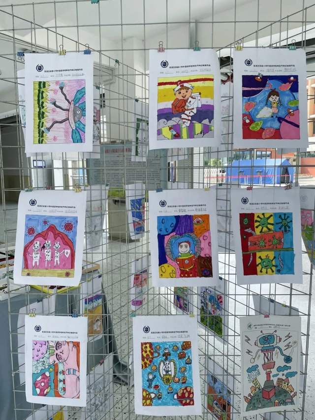 在科技节的全方位驱动下,艺术创作也开启了科技之光的大门。全校学生分年级分主题,为科学插上艺术的翅膀。将奇思妙想用手中的色彩与材料拼绘成一幅幅美丽的作品!