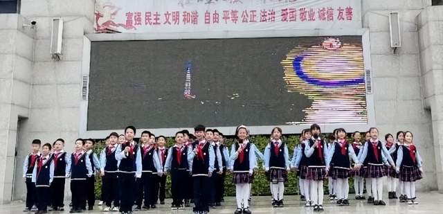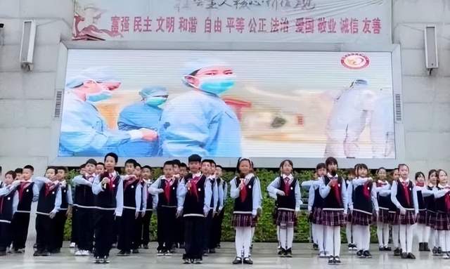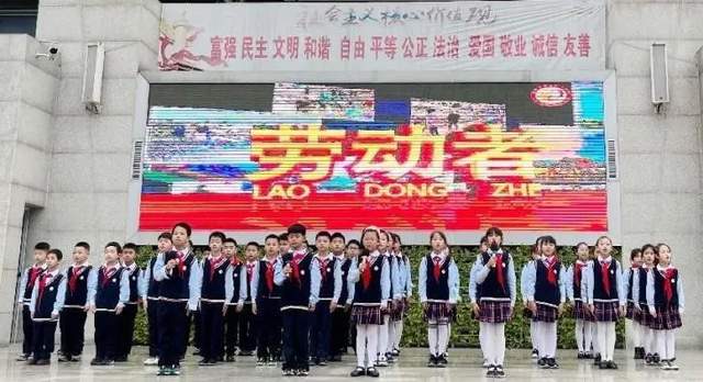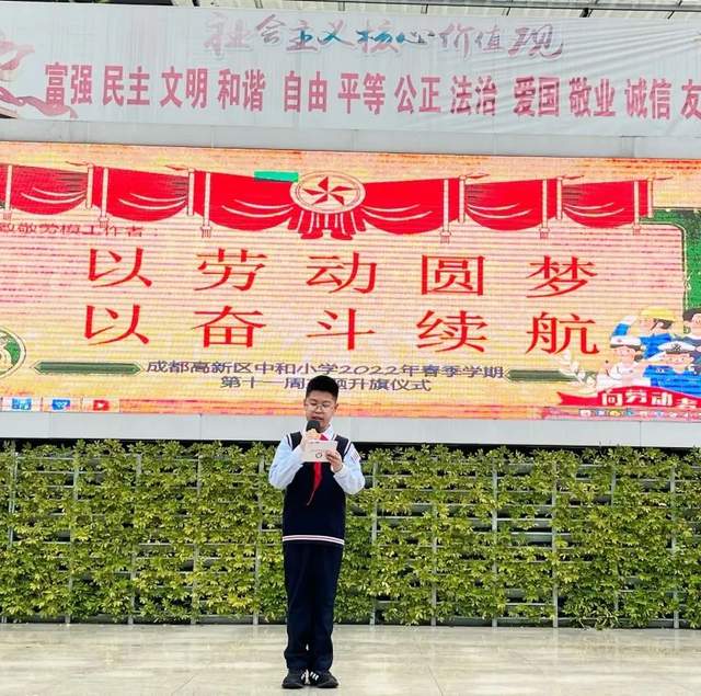 成都高新区中和小学在2022年4月25日举行了以 “以劳动圆梦 以奋斗续航”为主题的升旗仪式。