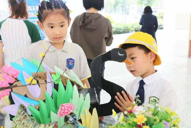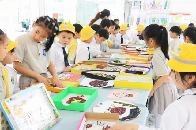 恰逢双实外的科技展,“废物再创造”“五谷粘贴画”“科幻画”“丙烯石头画”,通过双实外孩子灵巧的双手,创造了一件件五彩斑斓、创意无限的作品。孩子们充满好奇地观赏着、赞叹着,心里似乎有一股想要自己动手大干一番的冲动。