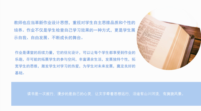 三个课题同时行进,是对学校的考验,也是对老师们的磨砺,大家痛并快乐着,感谢周校长的亲临指导,感谢课题组老师们的挑灯夜战。但课题申报只是开始,未来的研究之路还需教师们脚踏实地。研究之路之所以变得顺畅,是因为阅读力量的助推,教师阅读会快速助推教师专业成长。今天,双实外的李老师、王老师、芦老师、杨老师分别从作业设计、绘本故事、教学评一致性等几大方面进行阅读分享及自己阅读后的新思考,每位老师都有不同的见解和不同的阅读体会,借此机会也一并督促老师们继续坚持阅读,读好书、好读书、读书好……