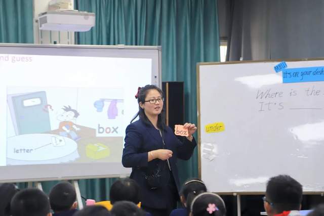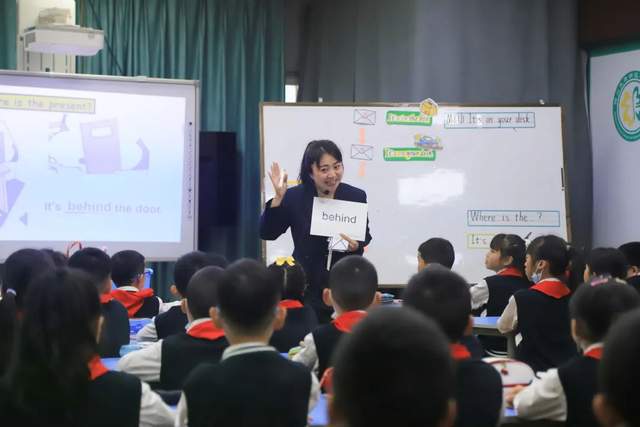 廖老师通过歌曲、实物展示唤醒学生的旧知--方位介词。在教授新知时,廖老师循循善诱,让学生观察图片寻找礼物的位置,不仅让学生在轻松愉快的氛围中发挥主动性,还能熟悉“on,in,under,behind”的表述,联系生活实际充分运用新知。