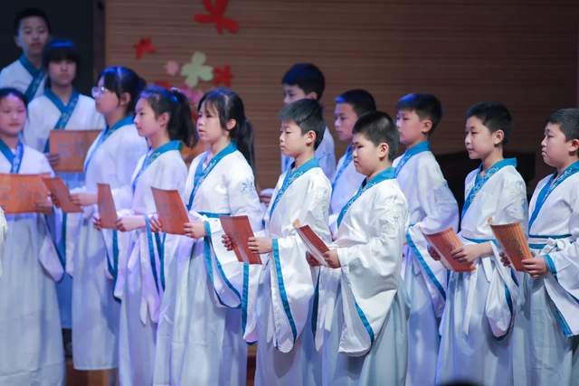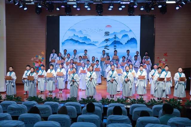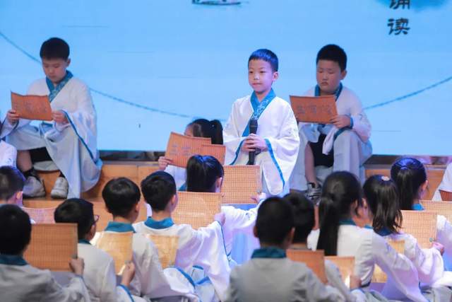 舞台上的孩子们是如此自信大方,生活中的孩子们更是时时与经典亲密接触,个个争做“腹有诗书气自华”的儒雅少年。