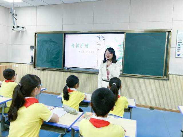 第二节课由西航港小学高雪莲老师带着五年级的学生学习《自相矛盾》。高老师从课题出发,文言文朗读的环节层层递进,在张老师的调动下,学生思维活跃、发言积极,读懂了故事、悟出了寓意。