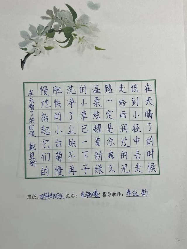 九层之台,起于累土。让学生练就一手好字,不是一朝一夕的事,而应从细微处入手,不断地坚持。在写字教学中,我们不断总结和思考,使写字教学更加有效,让一手好字伴随孩子一生。
