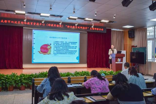 本次研修活动主题是“融合教育巡回指导”,由区特教资源中心(特教实验校)的融合教育巡回指导专职教师王玲(成都市第三届名师工作室领衔人)主讲。