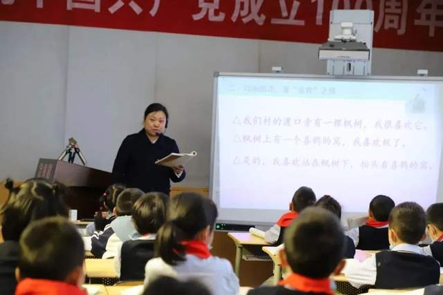 邓丹老师的《枫树上的喜鹊》,她抓住“喜欢”这个核心词语,指导朗读句子,把学生代入角色。在对喜鹊阿姨和喜鹊弟弟角色的真切体验中,投入自己的情感。