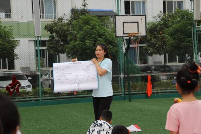 吴英老师的《武术基本手型》形式多种多样,课堂上孩子们跟着老师精神饱满地喊着一个个口令,俨然一个个小小武术家。