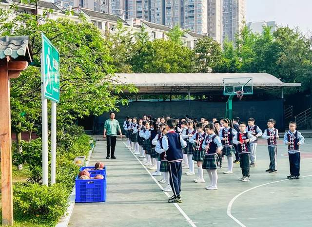 在课堂上,王峰老师精心布置了场地,让场地中所有学生都能观察到教师的示范动作。
