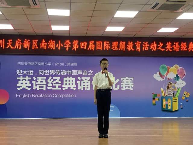 为丰富校园文化生活,提高学生国际视野,增强学生与国际交流对话的能力,助力成都大运会顺利举办,4月27-28日,四川天府新区南湖小学第四届国际理解教育主题活动——迎大运·向世界传递中国声音之“英语经典诵读比赛”正式开启。
