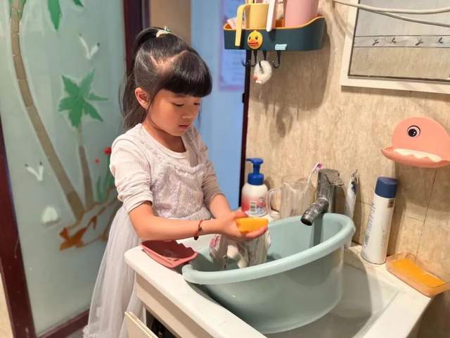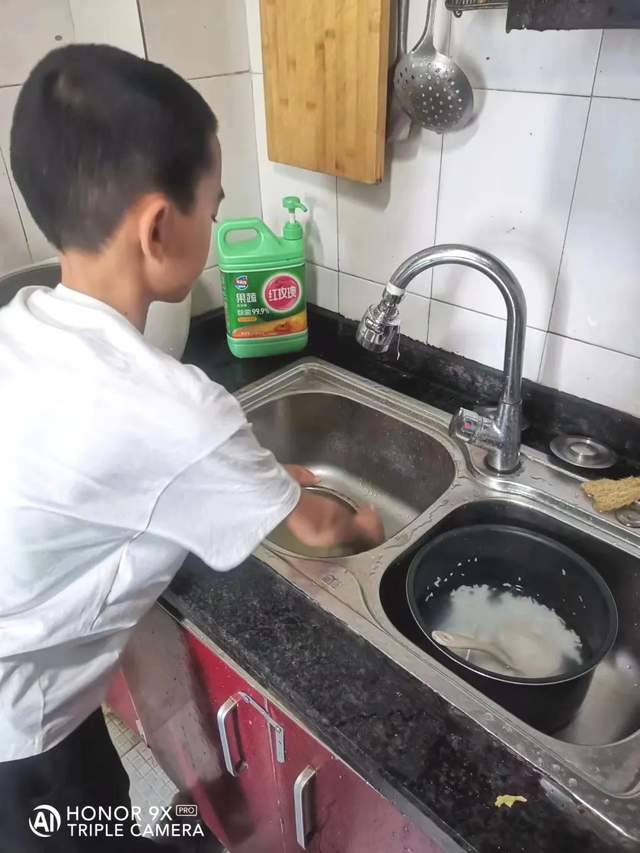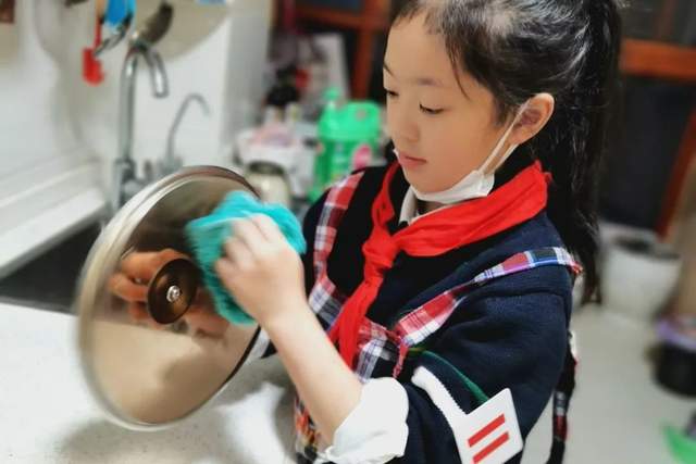 有的自觉收拾晚餐后的餐具清理餐桌,独立或协助家人洗碗