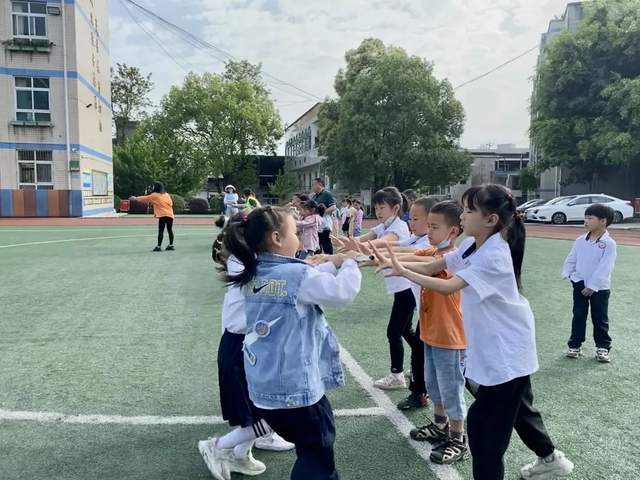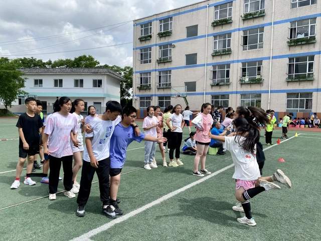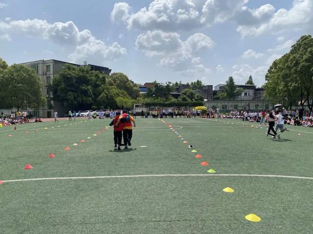 在同一天,玉皇校区的师生也齐聚操场进行一场别有一番趣味的运动会,齐跳兔子舞、小马过河、乒乓球接力、障碍赛跑,迎面接力……精彩纷呈。