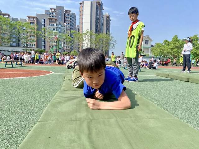 瞧,赛场上,运动员们跳跃、走平衡凳、匍匐前进,向着前方努力进发。