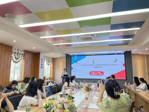 接着是第二批学员总结发言、三名学员课题结题汇报和工作室工作总结。学员们依次总结发言。李国颖老师对课题《唱歌音准教学方法的研究》进行结题汇报,彭先老师对课题《小学语文低段识字教学的有效性研究》进行结题汇报,汪敏老师对课题《小学数学小组合作学习评价机制有效性研究》进行结题汇报,陈坤蓉老师对第二批工作室学员一路走来的历程做了梳理汇报。学员们在工作室的学习中,除了在专业方面得到了发展,一个个从不懂研究到会做研究。刘旭师父的幽默、严谨的工作态度以及师父积极的生活态度,也在影响着学员。正是在这样一位优秀师父的带领下,老师们的小课题也顺利结题了,第二批学员工作室活动也将画上圆满的句号。
